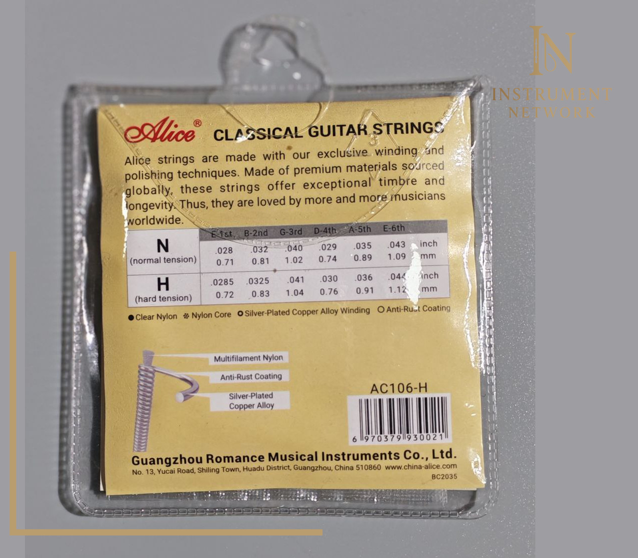 Alice AC106 classical guitar strings are designed to provide clear tone, smooth playability, and reliable durability. Featuring clear nylon trebles with silver-plated copper alloy wound bass strings, this set delivers a balanced sound suitable for daily practice and learning. With anti-rust coating and multifilament nylon construction, AC106 strings offer consistent tuning stability and extended lifespan, making them an excellent choice for students and developing players.