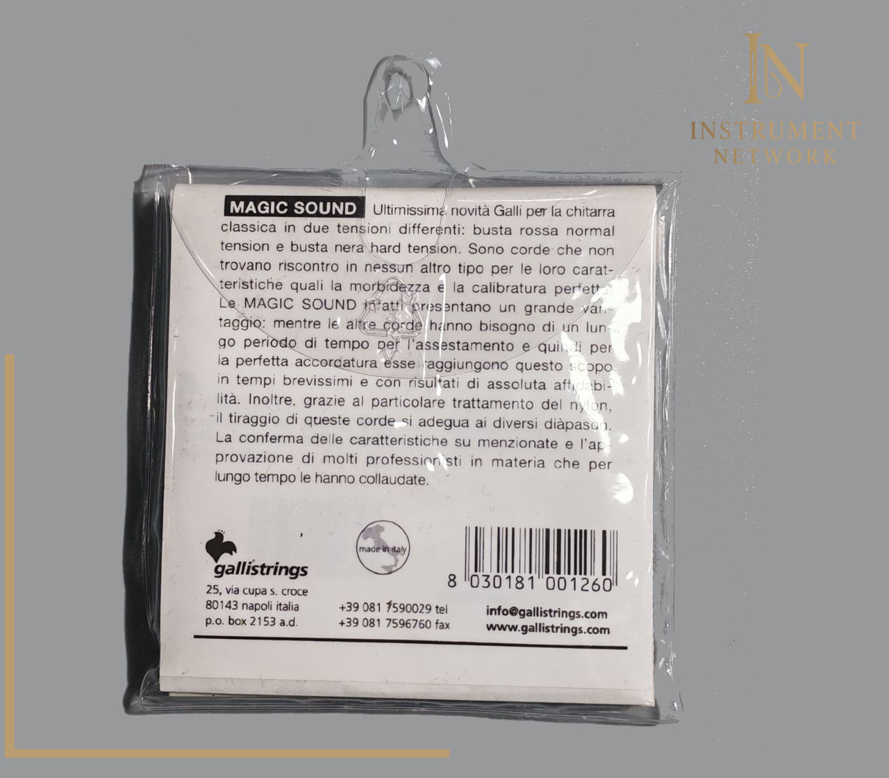 Experience the latest innovation from Galli Strings with Magic Sound classical guitar strings, available in both Normal Tension (red pack) and Hard Tension (black pack). Made with specially treated nylon, these strings settle quickly for stable intonation and adapt beautifully to different scale lengths. Renowned for their soft feel, perfect calibration, and professional-grade sound, they are favored by guitarists seeking responsiveness, comfort, and tonal clarity right from the first strum.