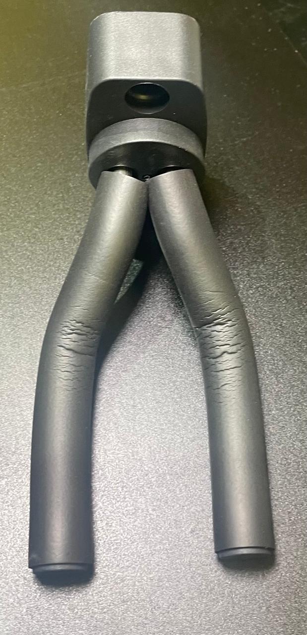 Material: Black powder-coated metal frame with protective foam padding on contact points