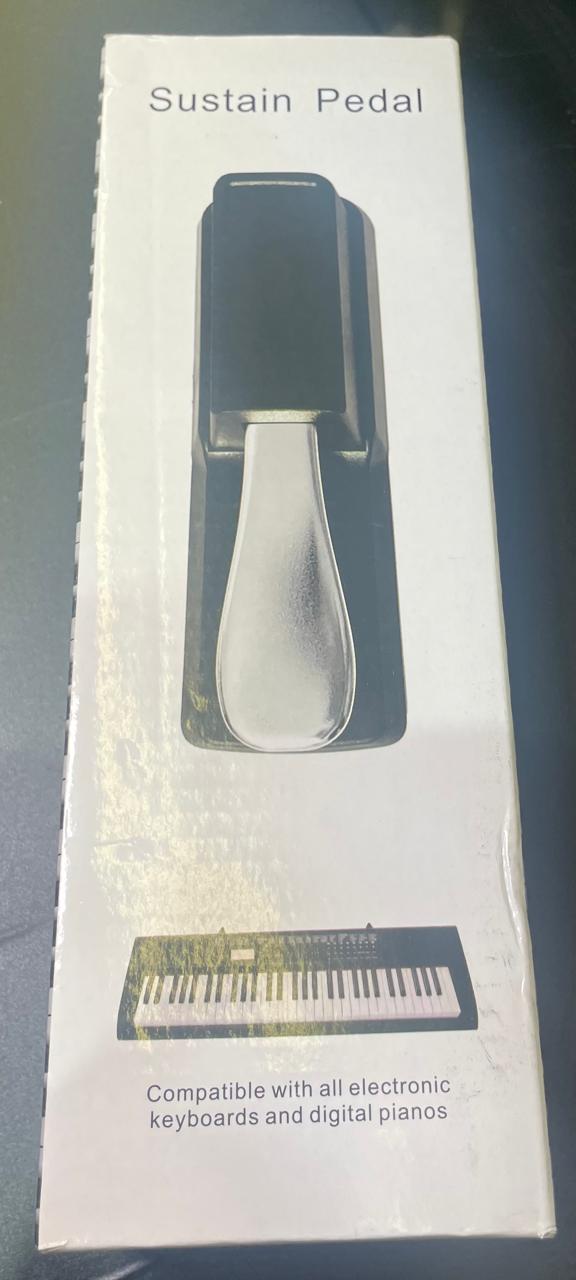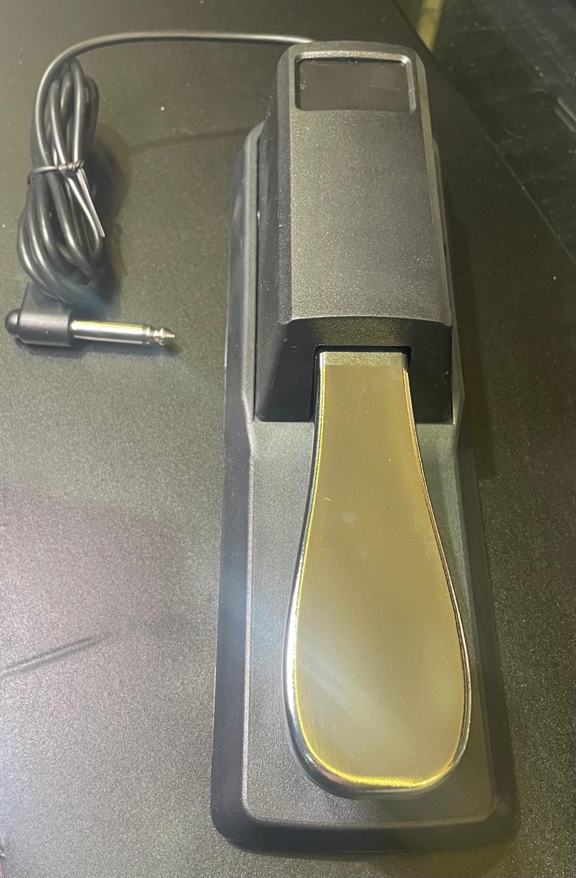 Professional piano-style sustain pedal with polished chrome top and solid plastic base for stability