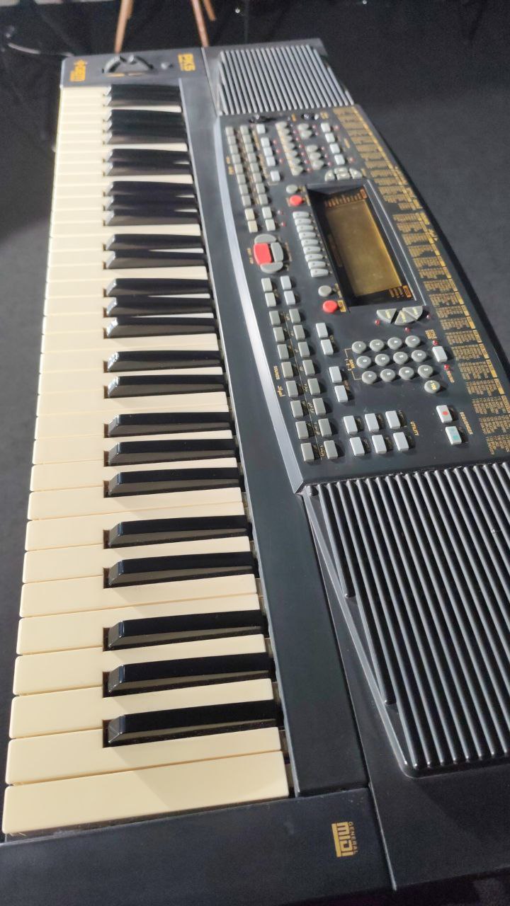 Used like new, the Gem PK5 Oriental keyboard features 61 velocity-sensitive keys with 256 PCM sounds including 8 drum kits and 32-note polyphony. It offers specialized Oriental styles with Arabic scale support, programmable split functionality, 22 reverb/chorus types, 8 harmony types, sequencer capabilities, and MIDI compatibility.